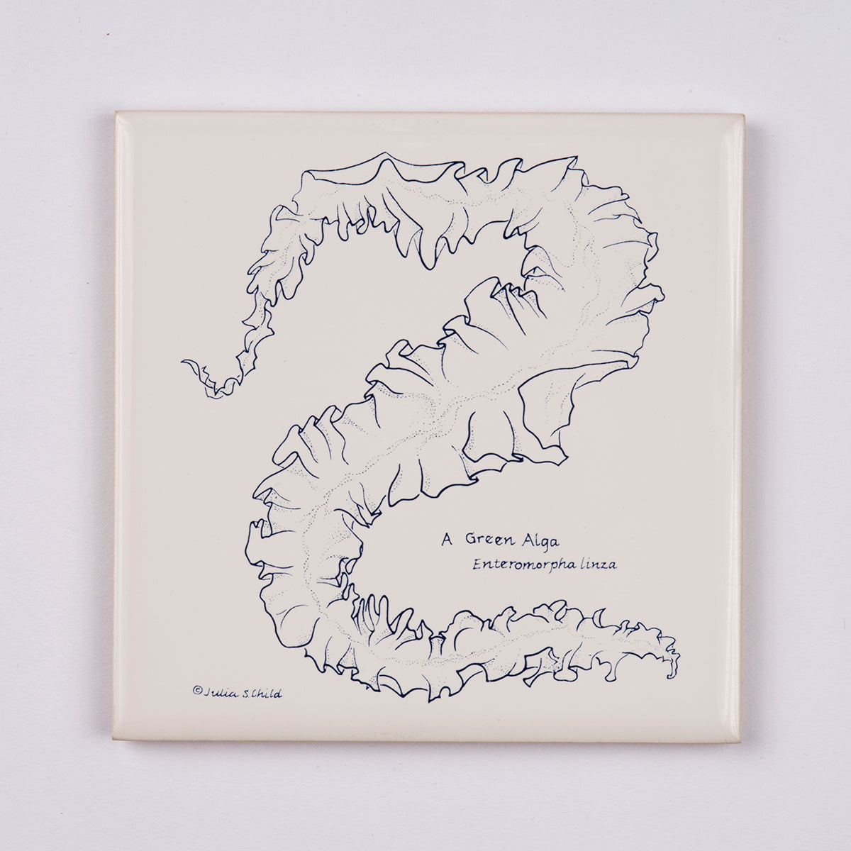 Great desk or table coaster measures 4" x 4" with image drawn by local artist Julia Child. Coaster has a non - slip backing.